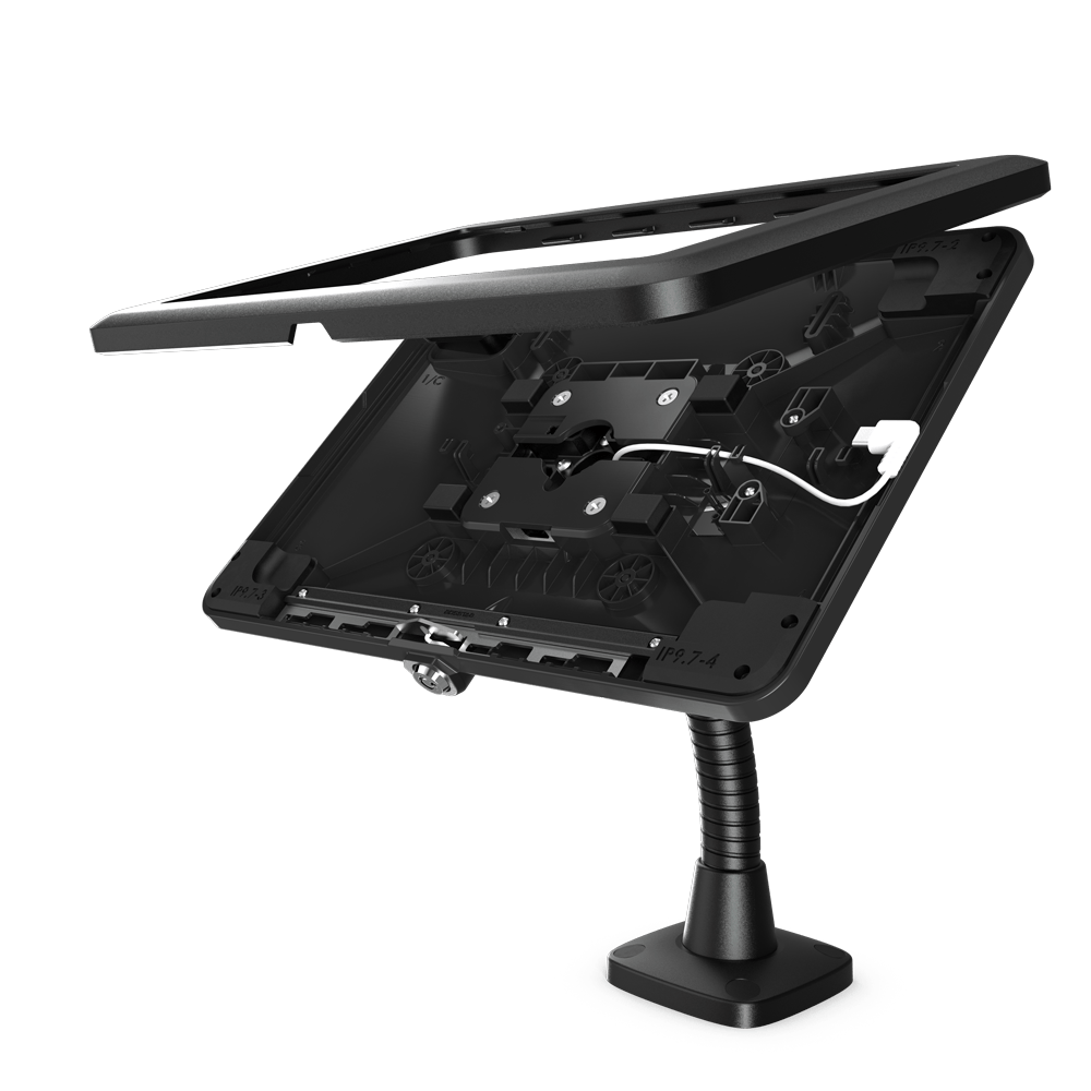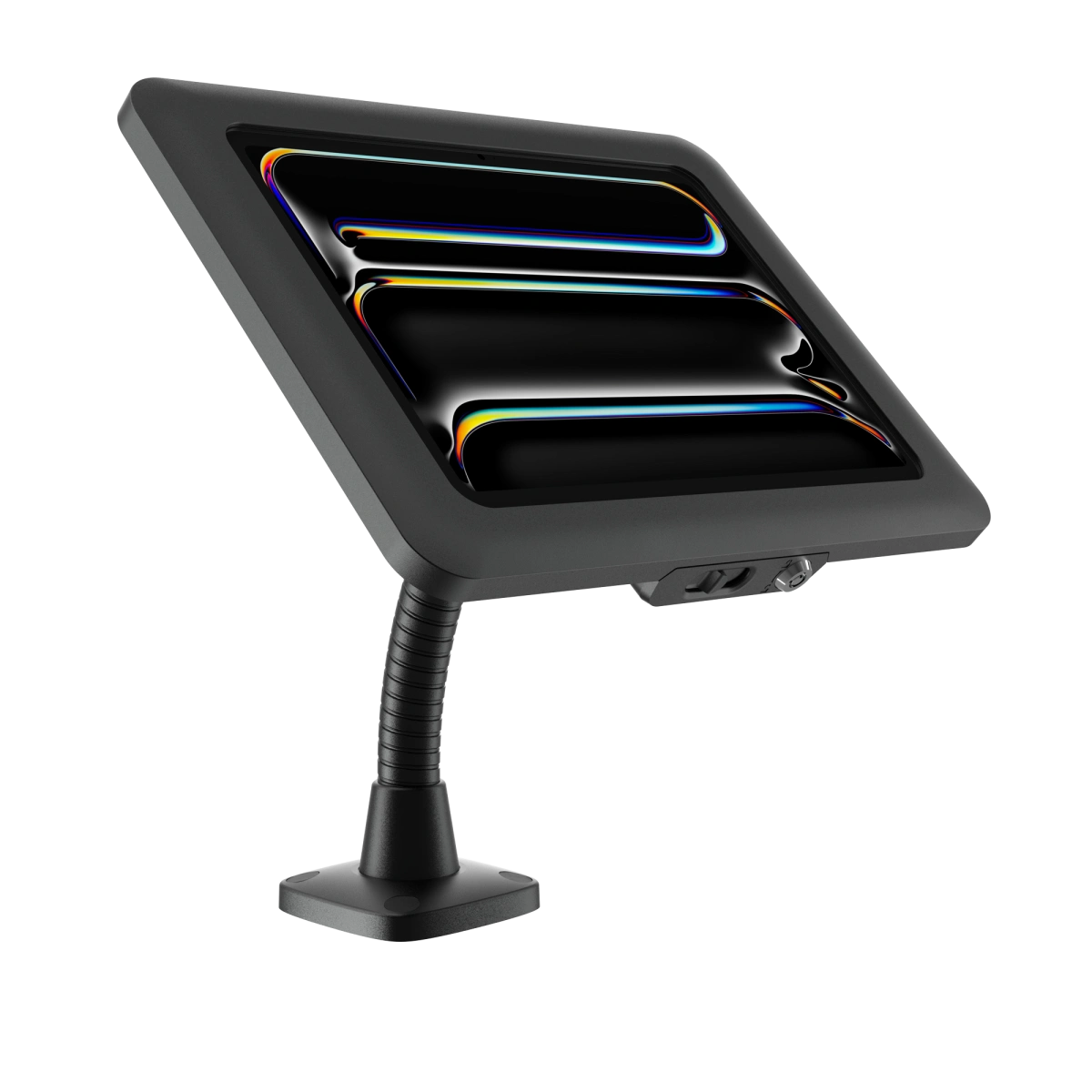 Ticari ortamlar için özel olarak tasarlanan Elite Flex, esnek ve ayarlanabilir bir kol ile güvenli, kilitlenebilir tablet tutucuyu bir arada sunar. Kolay montaj avantajı ve kabloları gizleyen dahili tasarımı, onu tezgah üstü interaktif ekranlar için ideal kılar. Beyaz ve siyah renk seçenekleri mevcuttur.